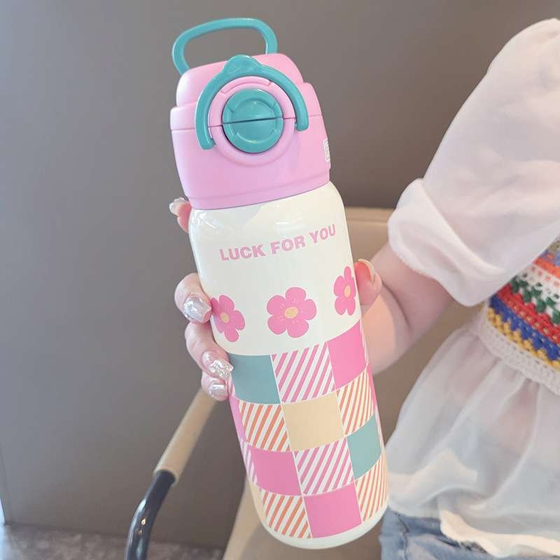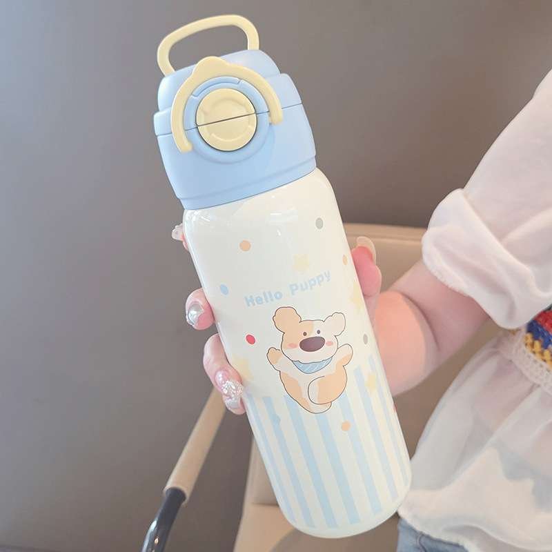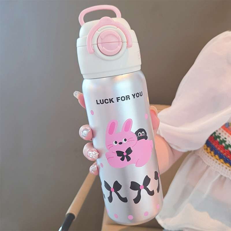 Stainless Steel Cartoon Children’s Water Bottle with Straw